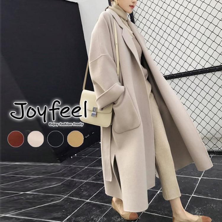 ガウン ロングコート レディース コート 無地 黒 ベージュ 緑 マスタード テラコッタ 韓国 Jo At 2845 海外ファッション Joyfeel 通販 Yahoo ショッピング